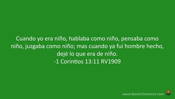Cuando yo era niño, hablaba como niño, pensaba como niño, juzgaba como niño; mas cuando ya fuí hombre hecho, dejé lo que era de niño. -1 Corintios 13:11 RV1909
