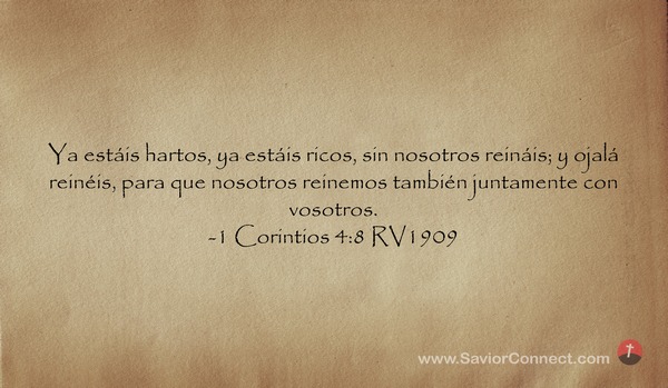 Ya estáis hartos, ya estáis ricos, sin nosotros reináis; y ojalá reinéis, para que nosotros reinemos también juntamente con vosotros. -1 Corintios 4:8 RV1909