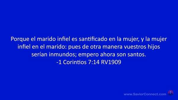 Porque el marido infiel es santificado en la mujer, y la mujer infiel en el marido: pues de otra manera vuestros hijos serían inmundos; empero ahora son santos. -1 Corintios 7:14 RV1909