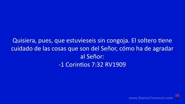 Quisiera, pues, que estuvieseis sin congoja. El soltero tiene cuidado de las cosas que son del Señor, cómo ha de agradar al Señor: -1 Corintios 7:32 RV1909