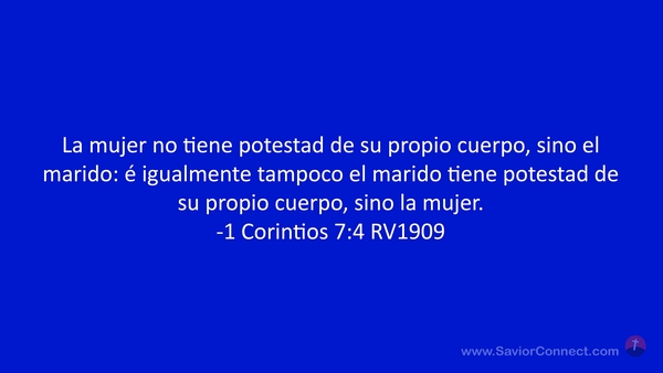 La mujer no tiene potestad de su propio cuerpo, sino el marido: é igualmente tampoco el marido tiene potestad de su propio cuerpo, sino la mujer. -1 Corintios 7:4 RV1909