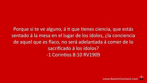 Porque si te ve alguno, á ti que tienes ciencia, que estás sentado á la mesa en el lugar de los ídolos, ¿la conciencia de aquel que es flaco, no será adelantada á comer de lo sacrificado á los ídolos? -1 Corintios 8:10 RV1909
