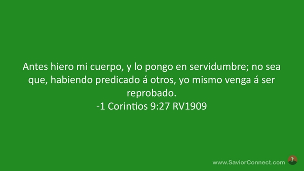 Antes hiero mi cuerpo, y lo pongo en servidumbre; no sea que, habiendo predicado á otros, yo mismo venga á ser reprobado. -1 Corintios 9:27 RV1909