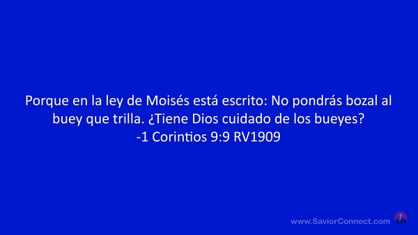 Porque en la ley de Moisés está escrito: No pondrás bozal al buey que trilla. ¿Tiene Dios cuidado de los bueyes? -1 Corintios 9:9 RV1909