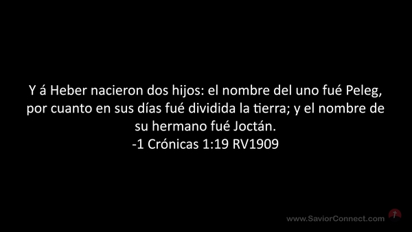 Y á Heber nacieron dos hijos: el nombre del uno fué Peleg, por cuanto en sus días fué dividida la tierra; y el nombre de su hermano fué Joctán. -1 Crónicas 1:19 RV1909