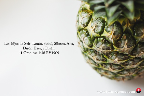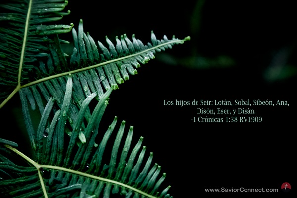 Los hijos de Seir: Lotán, Sobal, Sibeón, Ana, Disón, Eser, y Disán. -1 Crónicas 1:38 RV1909