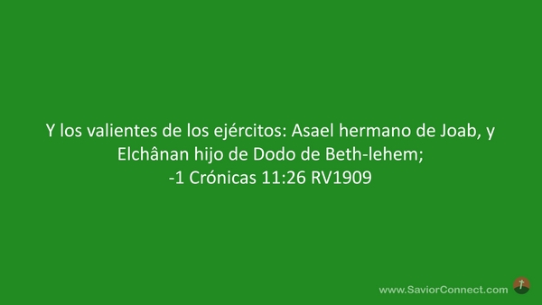 Y los valientes de los ejércitos: Asael hermano de Joab, y Elchânan hijo de Dodo de Beth-lehem; -1 Crónicas 11:26 RV1909