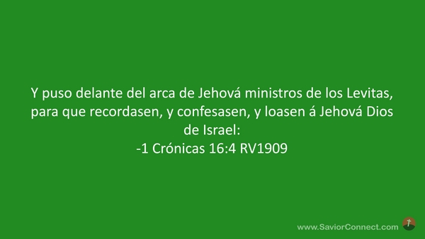 Y puso delante del arca de Jehová ministros de los Levitas, para que recordasen, y confesasen, y loasen á Jehová Dios de Israel: -1 Crónicas 16:4 RV1909
