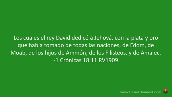 Los cuales el rey David dedicó á Jehová, con la plata y oro que había tomado de todas las naciones, de Edom, de Moab, de los hijos de Ammón, de los Filisteos, y de Amalec. -1 Crónicas 18:11 RV1909