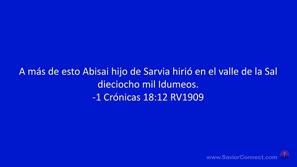 A más de esto Abisai hijo de Sarvia hirió en el valle de la Sal dieciocho mil Idumeos. -1 Crónicas 18:12 RV1909