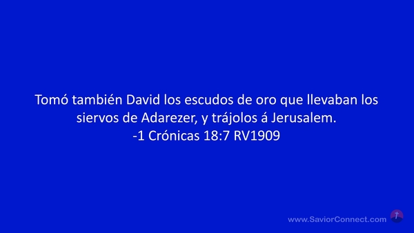 Tomó también David los escudos de oro que llevaban los siervos de Adarezer, y trájolos á Jerusalem. -1 Crónicas 18:7 RV1909