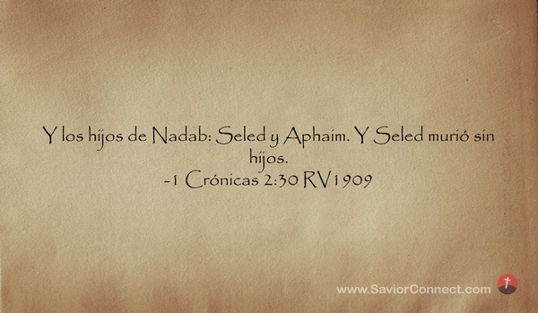 Y los hijos de Nadab: Seled y Aphaim. Y Seled murió sin hijos. -1 Crónicas 2:30 RV1909