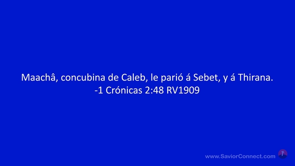 Maachâ, concubina de Caleb, le parió á Sebet, y á Thirana. -1 Crónicas 2:48 RV1909