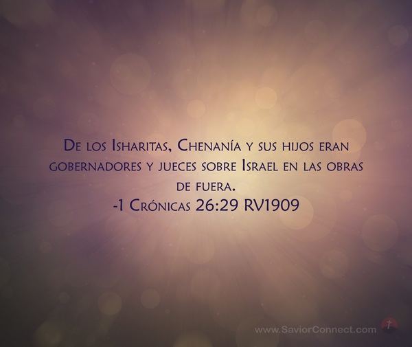 De los Isharitas, Chenanía y sus hijos eran gobernadores y jueces sobre Israel en las obras de fuera. -1 Crónicas 26:29 RV1909