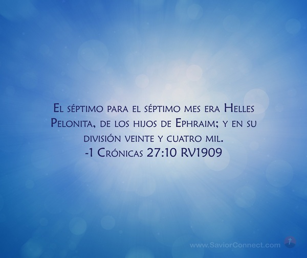 El séptimo para el séptimo mes era Helles Pelonita, de los hijos de Ephraim; y en su división veinte y cuatro mil. -1 Crónicas 27:10 RV1909