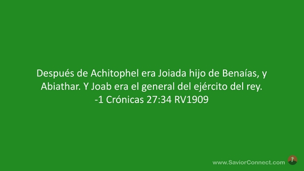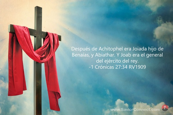 Después de Achitophel era Joiada hijo de Benaías, y Abiathar. Y Joab era el general del ejército del rey. -1 Crónicas 27:34 RV1909