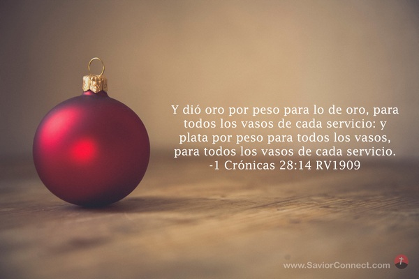 Y dió oro por peso para lo de oro, para todos los vasos de cada servicio: y plata por peso para todos los vasos, para todos los vasos de cada servicio. -1 Crónicas 28:14 RV1909