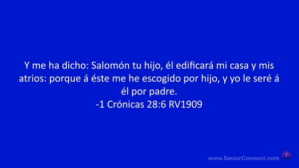Y me ha dicho: Salomón tu hijo, él edificará mi casa y mis atrios: porque á éste me he escogido por hijo, y yo le seré á él por padre. -1 Crónicas 28:6 RV1909