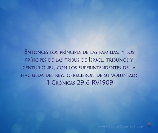 Entonces los príncipes de las familias, y los príncipes de las tribus de Israel, tribunos y centuriones, con los superintendentes de la hacienda del rey, ofrecieron de su voluntad; -1 Crónicas 29:6 RV1909