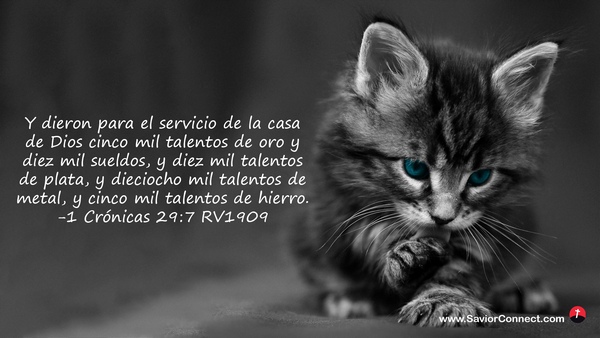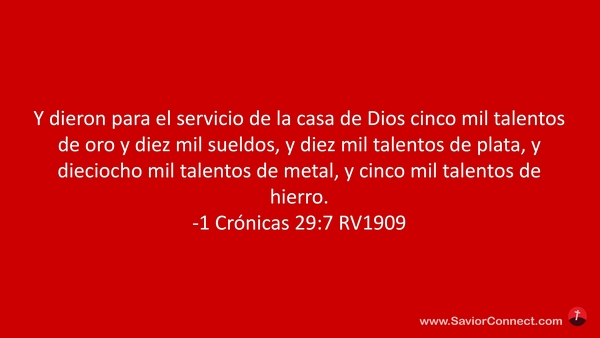 Y dieron para el servicio de la casa de Dios cinco mil talentos de oro y diez mil sueldos, y diez mil talentos de plata, y dieciocho mil talentos de metal, y cinco mil talentos de hierro. -1 Crónicas 29:7 RV1909