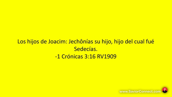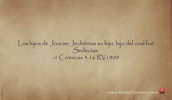 Los hijos de Joacim: Jechônías su hijo, hijo del cual fué Sedecías. -1 Crónicas 3:16 RV1909