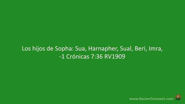 Los hijos de Sopha: Sua, Harnapher, Sual, Beri, Imra, -1 Crónicas 7:36 RV1909