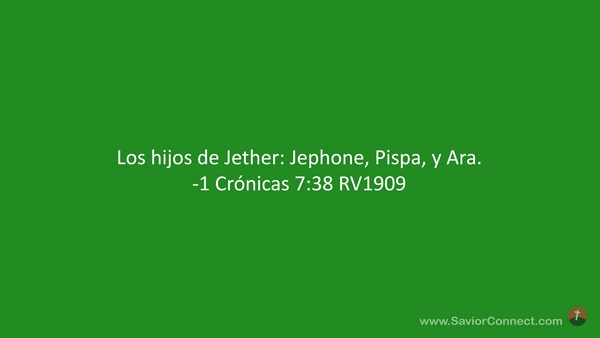 Los hijos de Jether: Jephone, Pispa, y Ara. -1 Crónicas 7:38 RV1909