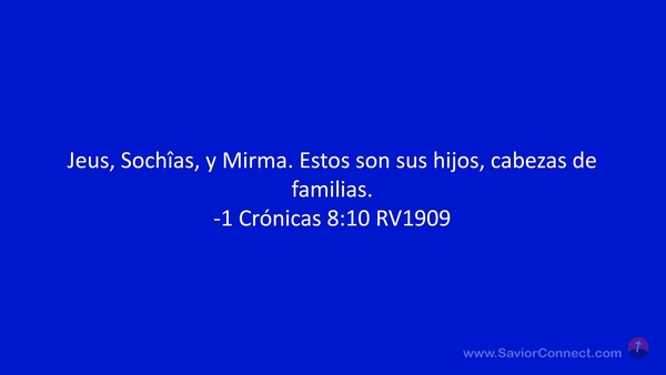 Jeus, Sochîas, y Mirma. Estos son sus hijos, cabezas de familias. -1 Crónicas 8:10 RV1909