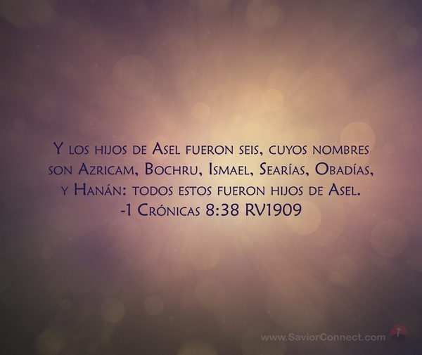 Y los hijos de Asel fueron seis, cuyos nombres son Azricam, Bochru, Ismael, Searías, Obadías, y Hanán: todos estos fueron hijos de Asel. -1 Crónicas 8:38 RV1909