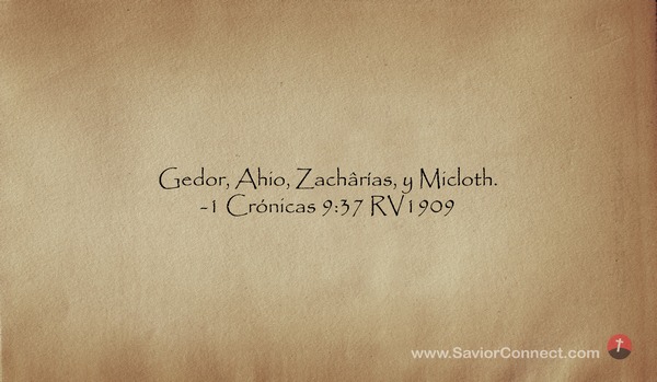 Gedor, Ahio, Zachârías, y Micloth. -1 Crónicas 9:37 RV1909