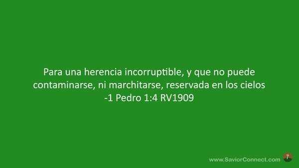 Para una herencia incorruptible, y que no puede contaminarse, ni marchitarse, reservada en los cielos -1 Pedro 1:4 RV1909