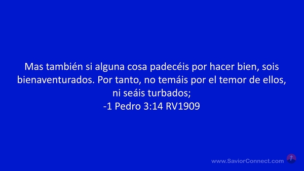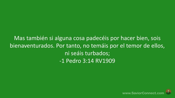 Mas también si alguna cosa padecéis por hacer bien, sois bienaventurados. Por tanto, no temáis por el temor de ellos, ni seáis turbados; -1 Pedro 3:14 RV1909