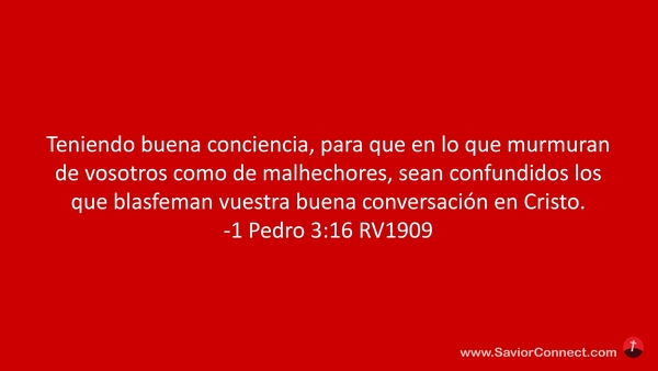Teniendo buena conciencia, para que en lo que murmuran de vosotros como de malhechores, sean confundidos los que blasfeman vuestra buena conversación en Cristo. -1 Pedro 3:16 RV1909