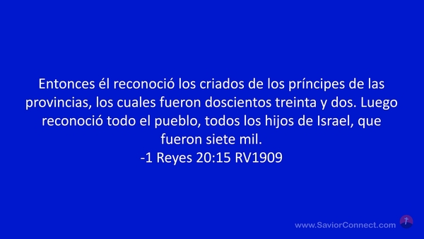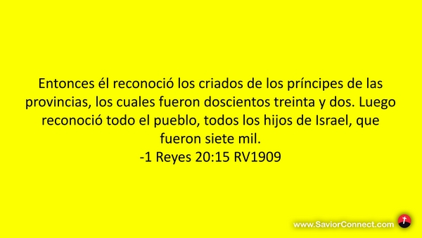 Entonces él reconoció los criados de los príncipes de las provincias, los cuales fueron doscientos treinta y dos. Luego reconoció todo el pueblo, todos los hijos de Israel, que fueron siete mil. -1 Reyes 20:15 RV1909