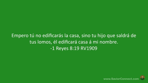 Empero tú no edificarás la casa, sino tu hijo que saldrá de tus lomos, él edificará casa á mi nombre. -1 Reyes 8:19 RV1909