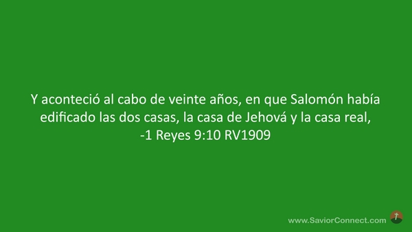 Y aconteció al cabo de veinte años, en que Salomón había edificado las dos casas, la casa de Jehová y la casa real, -1 Reyes 9:10 RV1909