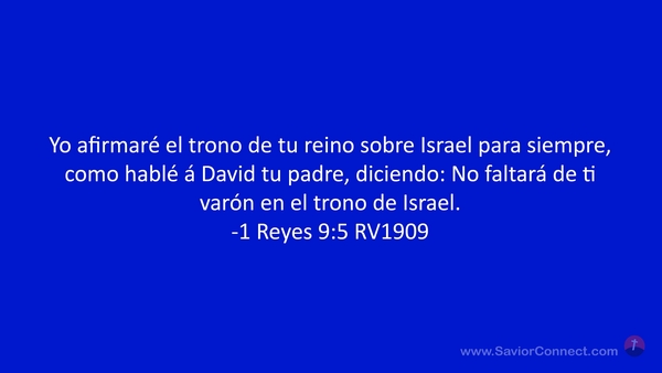 Yo afirmaré el trono de tu reino sobre Israel para siempre, como hablé á David tu padre, diciendo: No faltará de ti varón en el trono de Israel. -1 Reyes 9:5 RV1909