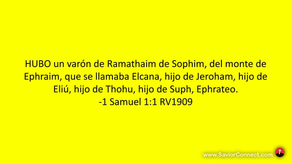 HUBO un varón de Ramathaim de Sophim, del monte de Ephraim, que se llamaba Elcana, hijo de Jeroham, hijo de Eliú, hijo de Thohu, hijo de Suph, Ephrateo. -1 Samuel 1:1 RV1909