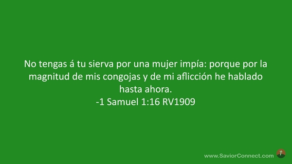 No tengas á tu sierva por una mujer impía: porque por la magnitud de mis congojas y de mi aflicción he hablado hasta ahora. -1 Samuel 1:16 RV1909