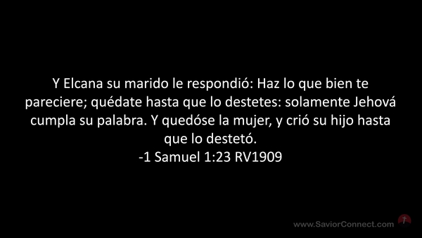 Y Elcana su marido le respondió: Haz lo que bien te pareciere; quédate hasta que lo destetes: solamente Jehová cumpla su palabra. Y quedóse la mujer, y crió su hijo hasta que lo destetó. -1 Samuel 1:23 RV1909