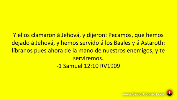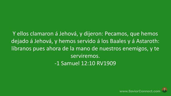 Y ellos clamaron á Jehová, y dijeron: Pecamos, que hemos dejado á Jehová, y hemos servido á los Baales y á Astaroth: líbranos pues ahora de la mano de nuestros enemigos, y te serviremos. -1 Samuel 12:10 RV1909