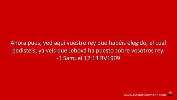 Ahora pues, ved aquí vuestro rey que habéis elegido, el cual pedisteis; ya veis que Jehová ha puesto sobre vosotros rey. -1 Samuel 12:13 RV1909