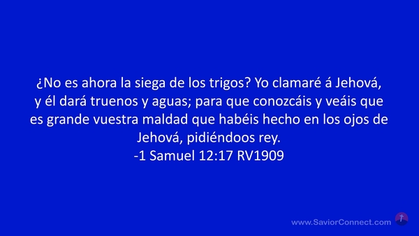 ¿No es ahora la siega de los trigos? Yo clamaré á Jehová, y él dará truenos y aguas; para que conozcáis y veáis que es grande vuestra maldad que habéis hecho en los ojos de Jehová, pidiéndoos rey. -1 Samuel 12:17 RV1909