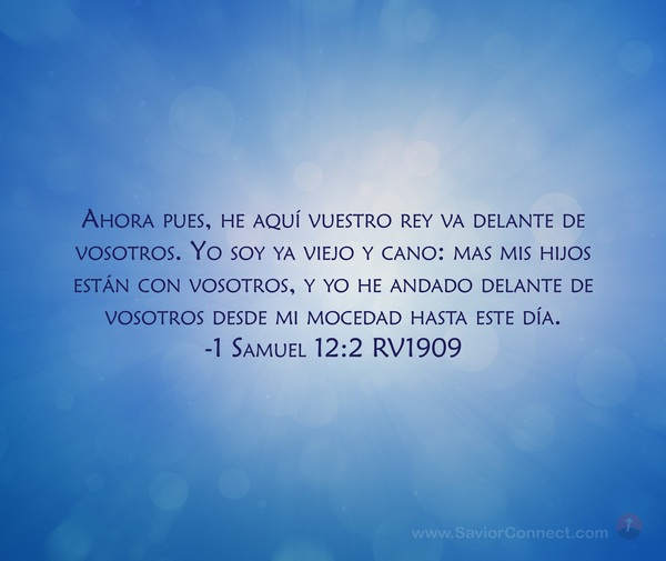 Ahora pues, he aquí vuestro rey va delante de vosotros. Yo soy ya viejo y cano: mas mis hijos están con vosotros, y yo he andado delante de vosotros desde mi mocedad hasta este día. -1 Samuel 12:2 RV1909