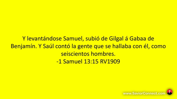 Y levantándose Samuel, subió de Gilgal á Gabaa de Benjamín. Y Saúl contó la gente que se hallaba con él, como seiscientos hombres. -1 Samuel 13:15 RV1909