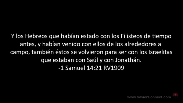 Y los Hebreos que habían estado con los Filisteos de tiempo antes, y habían venido con ellos de los alrededores al campo, también éstos se volvieron para ser con los Israelitas que estaban con Saúl y con Jonathán. -1 Samuel 14:21 RV1909