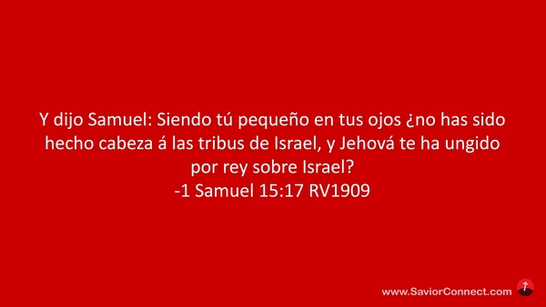 Y dijo Samuel: Siendo tú pequeño en tus ojos ¿no has sido hecho cabeza á las tribus de Israel, y Jehová te ha ungido por rey sobre Israel? -1 Samuel 15:17 RV1909