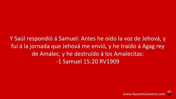 Y Saúl respondió á Samuel: Antes he oído la voz de Jehová, y fuí á la jornada que Jehová me envió, y he traído á Agag rey de Amalec, y he destruído á los Amalecitas: -1 Samuel 15:20 RV1909