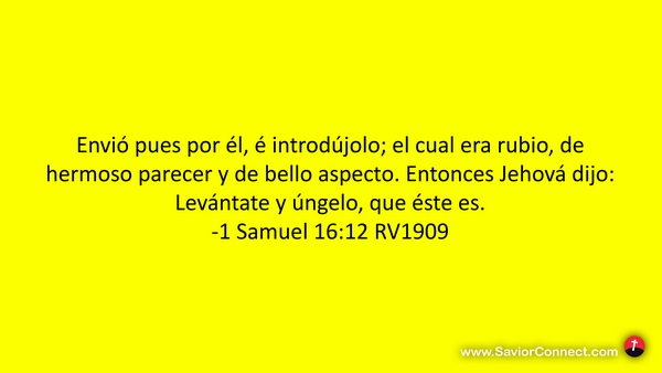 Envió pues por él, é introdújolo; el cual era rubio, de hermoso parecer y de bello aspecto. Entonces Jehová dijo: Levántate y úngelo, que éste es. -1 Samuel 16:12 RV1909