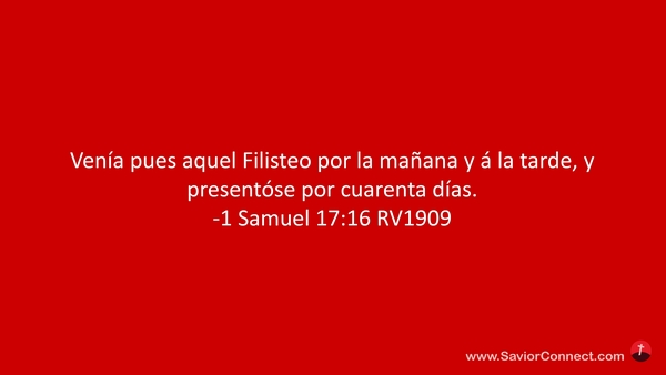 Venía pues aquel Filisteo por la mañana y á la tarde, y presentóse por cuarenta días. -1 Samuel 17:16 RV1909